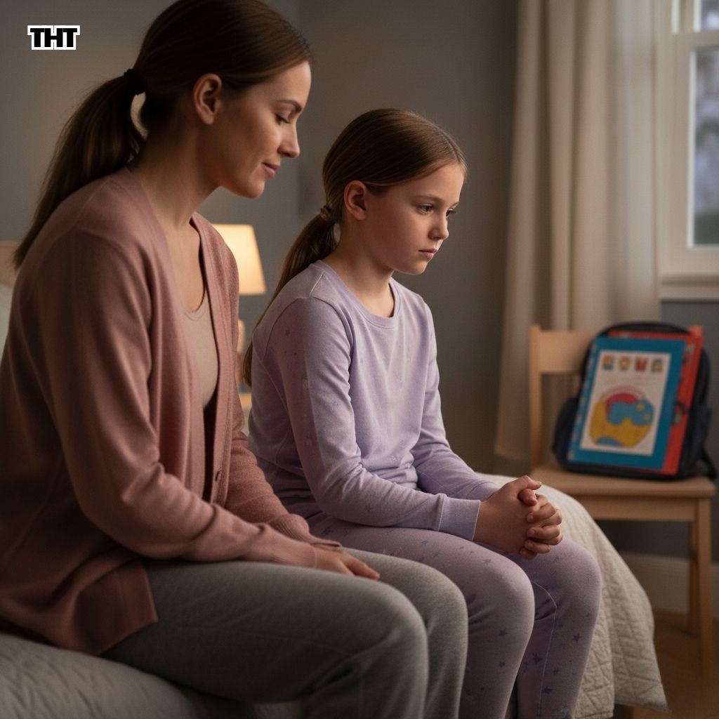 She was already in her room, sitting on her bed with her pajamas on, hair brushed, everything technically done, yet her body didn’t look done. Her hands were folded too tightly in her lap. Her eyes kept flicking toward the window. She smiled at me, but it was the polite kind of smile she uses when she’s trying not to be a “problem.”
