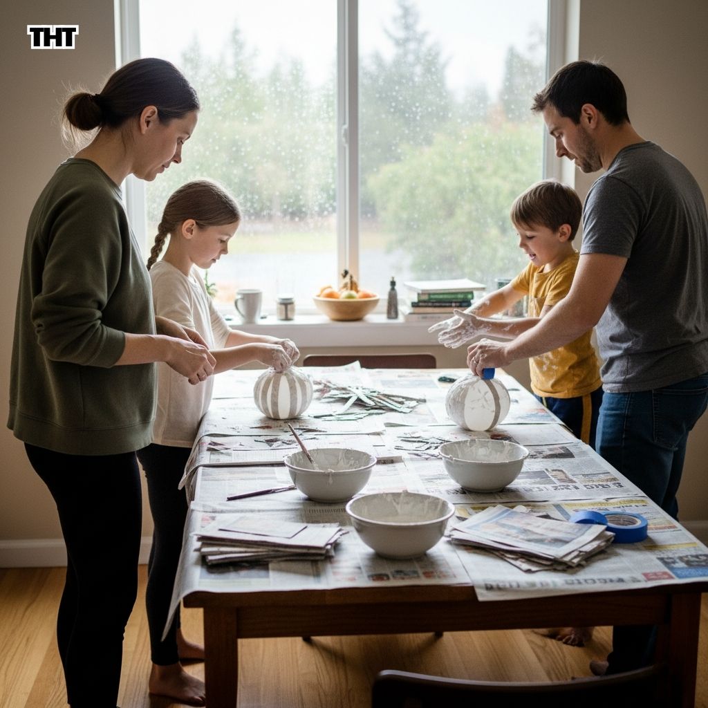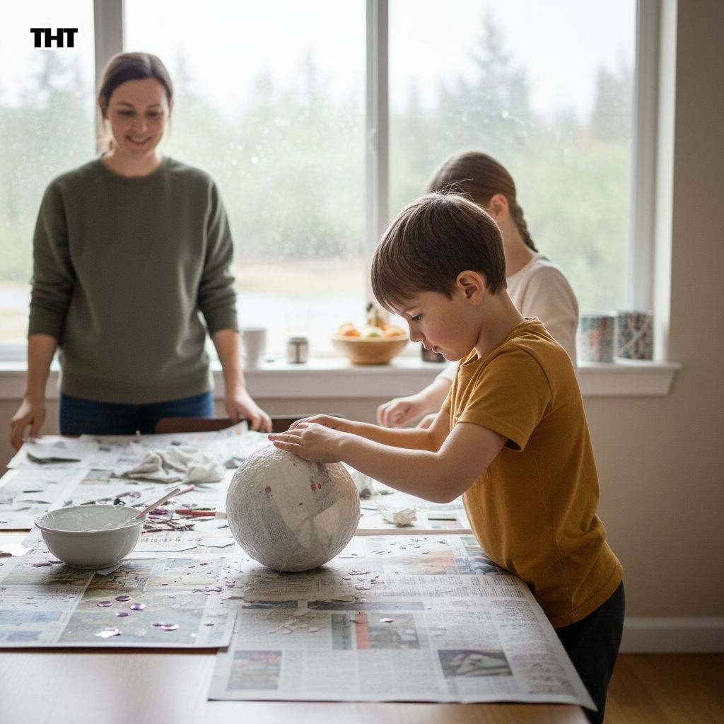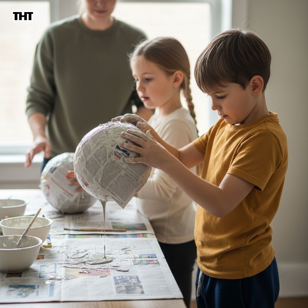 We set up a simple station: bowls, flour and water paste, strips of paper, balloons, and a few brushes. It looked innocent for about thirty seconds.