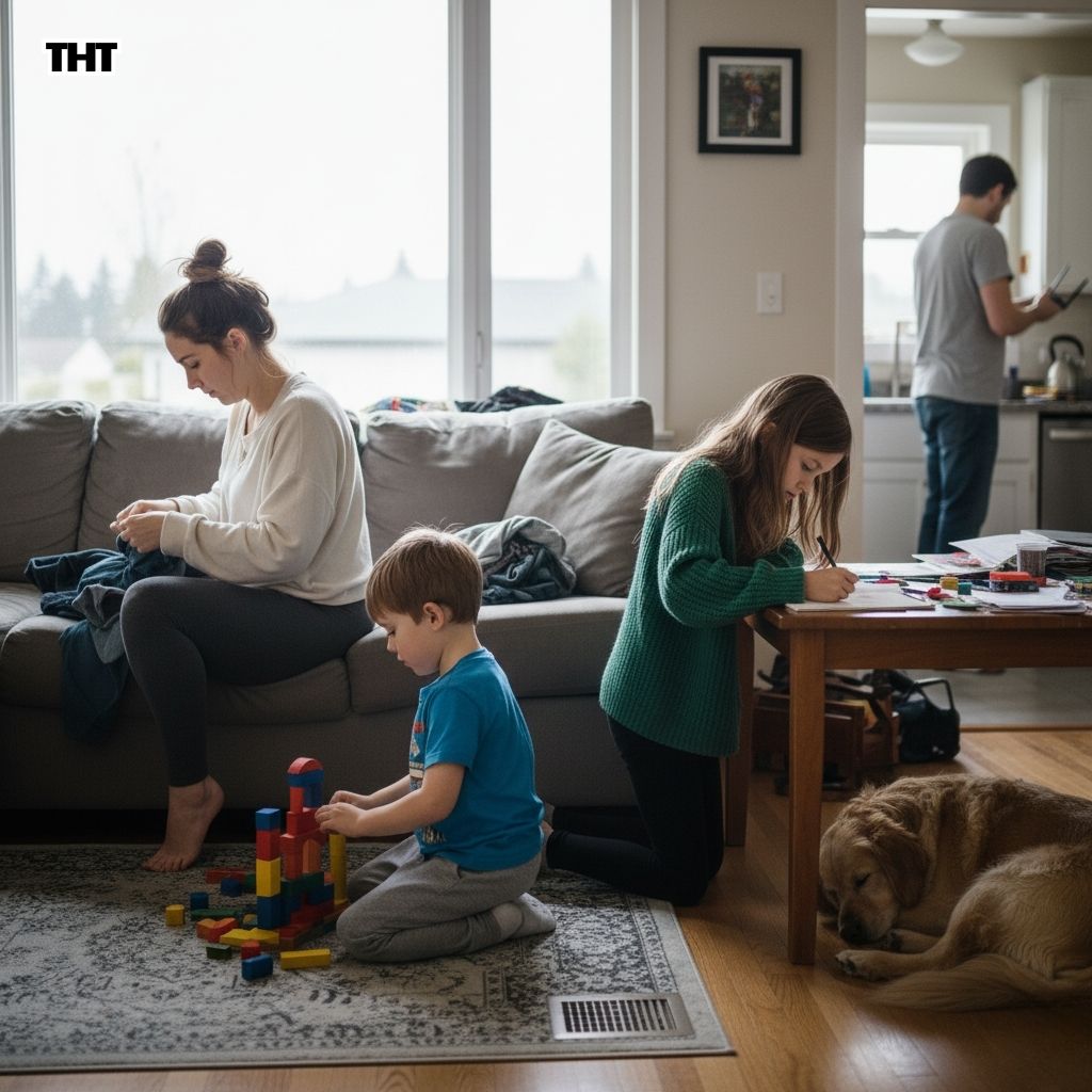 Nora was at the table drawing. When Nora draws, she enters a different universe. You could announce that the roof is missing and she’d say, “One second, I’m shading.” Miles was on the rug building something that was either a spaceship or a “lava truck,” depending on how the story was evolving in his head. Chris was in the kitchen troubleshooting the Wi-Fi, which is basically his way of saying he loves us deeply and also would like to not hear screaming.